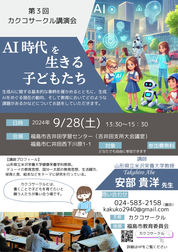 「AI時代を生きる子どもたち」山形県立米沢栄養大学教授の安部貴洋先生にご講演いただきました。